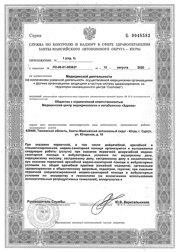 Диапазоны цен на приём врачей и специалистов, услуги и диагностику в центре эндокринологии Здрава в Сургуте.
