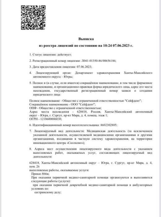 Диапазоны цен на приём врачей и специалистов, услуги и диагностику в Safe Dent (Сэйф Дэнт) в Сургуте.